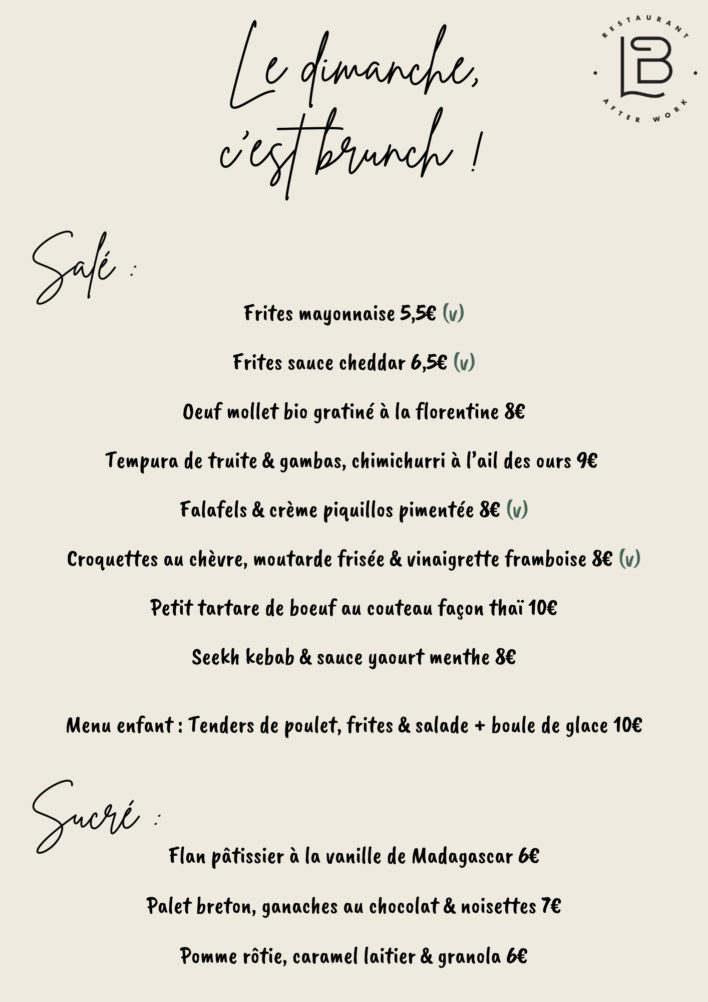 La carte du brunch est inspirée de la carte du moment et évolue aussi.