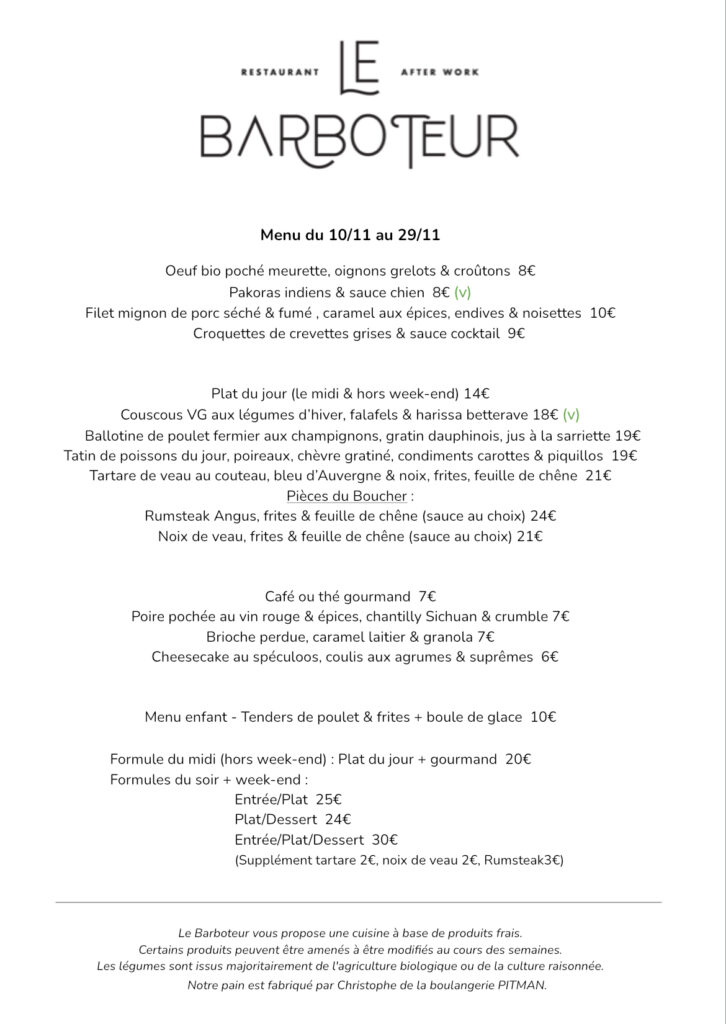 Au restaurant Le Barboteur à Lille, notre carte change tous les 15 jours !