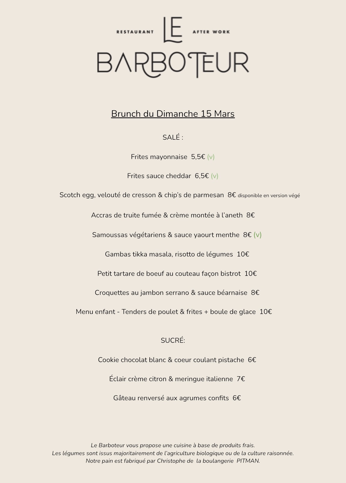 La carte du brunch est inspirée de la carte du moment et évolue aussi.